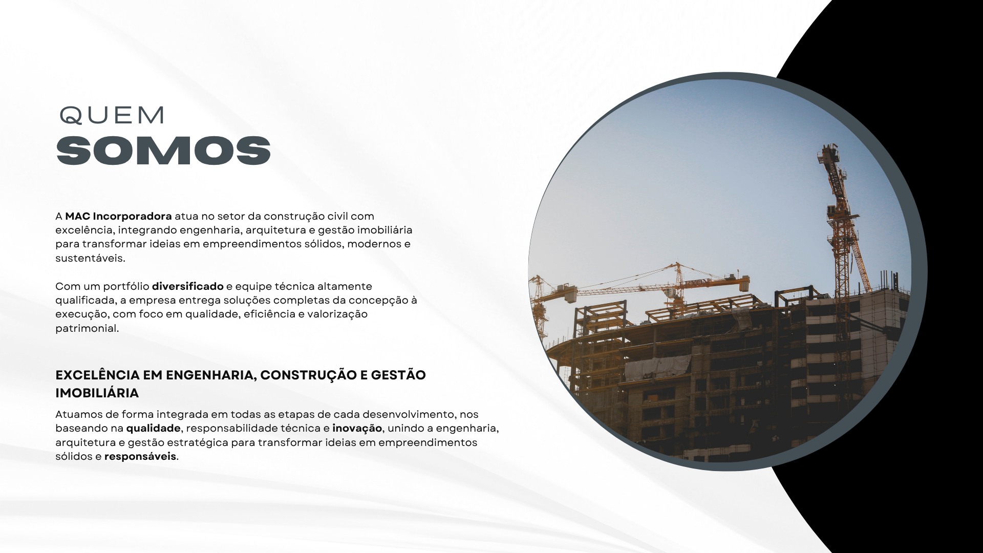 Bem-vindo(a) ao nosso site, ao futuro que estamos construindo, com propósito e planejamento, um novo conceito em desenvolvimento imobiliário que une solidez e inovação. Nossa missão é transformar espaços em oportunidades, construindo com responsabilidade, técnica e visão de futuro. Cada projeto nasce do compromisso em entregar qualidade, segurança e valorização, respeitando o meio ambiente e o patrimônio urbano. Mais do que erguer obras, construímos histórias, lares e investimentos sólidos. Unimos experiência e excelência, somando forças para impulsionar o crescimento regional e criar empreendimentos que inspiram confiança e prosperidade.